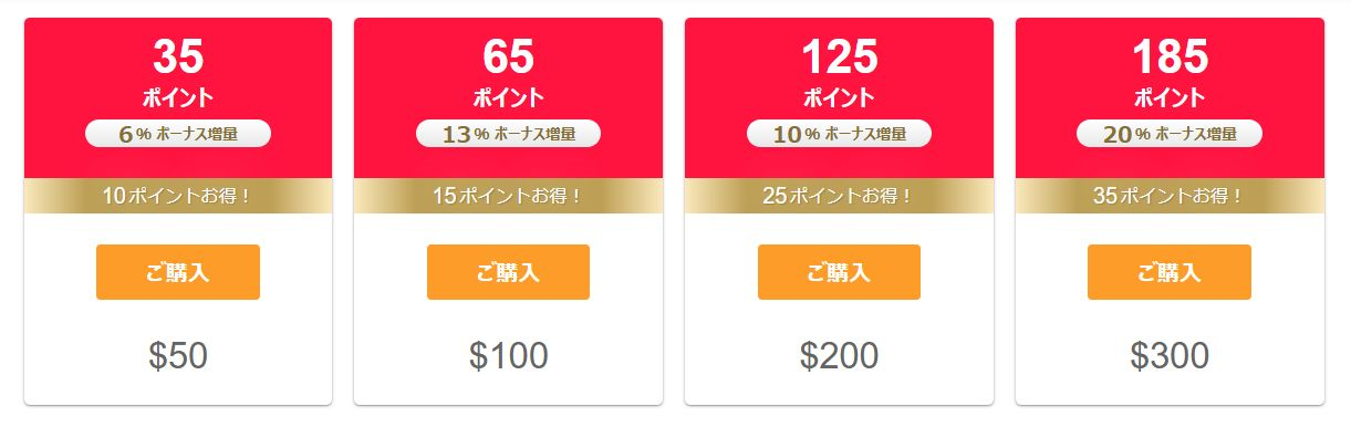 ポイント料金一覧が表示されるため、デビットカードで購入するポイントの「ご購入」をクリックします。
