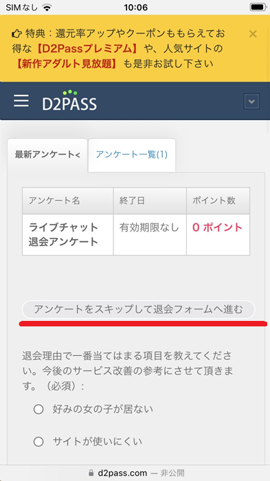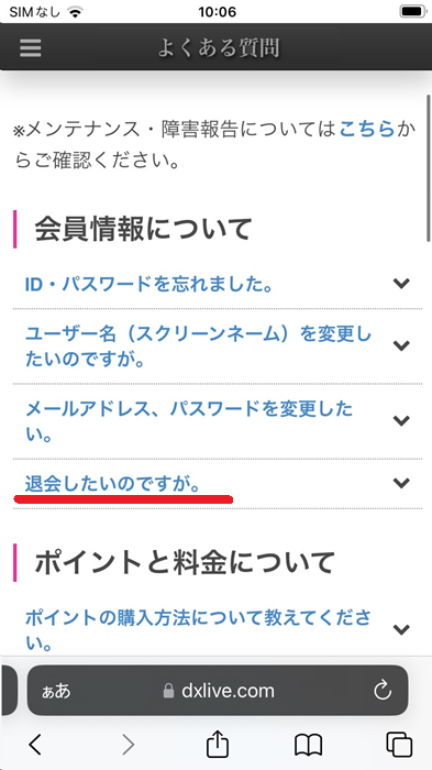 そうしますと「退会したいのですが」をタップして、「退会フォーム」をタップします。