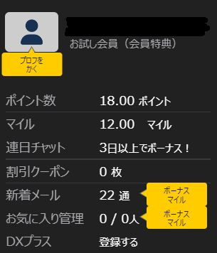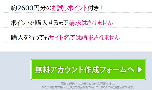 DXLIVEは入会手続き完了後、すぐにお試しポイントを使ってチャットが行えます。